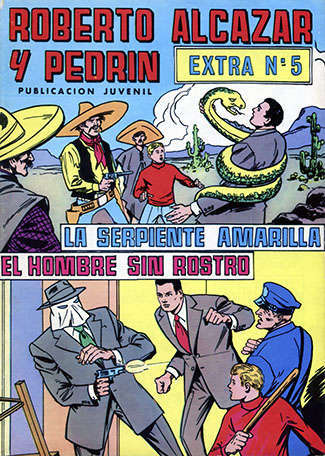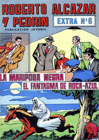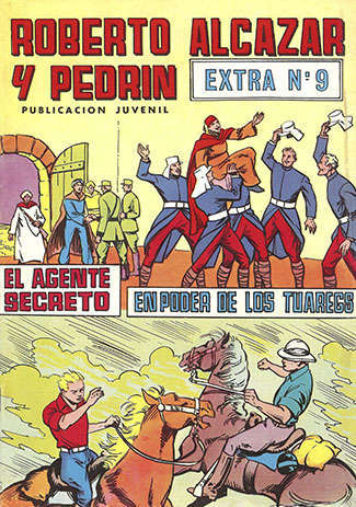 ROBERTO ALCÁZAR Y PEDRÍN. SEGUNDA ÉPOCA. NÚMEROS EXTRAS Editorial Bruguera. Año 1951. Guionista: Federico Amorós Martín del 28 al 54 y el 60 Guionista: Alfonso Arizmendi Regaldie del 1 al 6 Guionista: José J. Deu Soriano del 1 al 6 y 49 y 50 Guionista: José Jordán Jóver del 3 al 27 Guionista: Pedro Quesada Cerdán del 1 al 6 y el 47,54,56 y 59 Dibujante: Eduardo Vañó Pastor Reedición y coloreada por varios autores. |